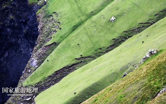 國家旅游地理 英國倫敦8月14日訊 在圣基爾達島已經(jīng)遺棄的村落旁的山坡上,有用石頭圍墻圈起的一塊塊耕地。當年在島上定居的村民在這些石圈內(nèi)鋪墊海藻,種植少量谷物。一個個形狀各異的石圈保護著這些寶貴的谷物免遭風暴與家畜的侵害(7月19日攝)。