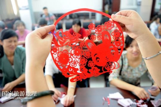 國家旅游地理 安徽合肥9月17日訊 9月17日,非遺剪紙傳人侯宏妹向?qū)W員講解“花好月圓”剪紙作品的制作。當(dāng)日,合肥市清溪路社區(qū)邀請(qǐng)非物質(zhì)文化遺產(chǎn)剪紙傳人侯宏妹來到社區(qū)向剪紙愛好者傳授技藝,并一起創(chuàng)作中秋題材的剪紙作品,迎接中秋佳節(jié)。 /新華社記者劉軍喜攝