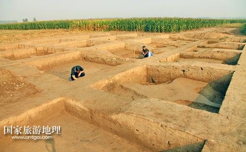 國家旅游地理 河北滄州9月21日訊 9月20日,考古人員在肅寧縣梁村鎮(zhèn)北白寺村附近的古村落遺址發(fā)掘現(xiàn)場工作。近日,南水北調(diào)保滄干渠工程征遷核查期間,在河北省肅寧縣梁村鎮(zhèn)北白寺村發(fā)掘了一處古村落遺址,考古人員進行搶救性發(fā)掘,出土了大批唐宋時期的生活用品、陶瓷碎片及一眼古井。據(jù)介紹,目前考古隊已挖出13個探方,該古村莊遺址的搶救性發(fā)掘工作還將持續(xù)3個月,探方數(shù)量將增加到80多個,面積達2000平方米。該遺址的發(fā)掘,有助于了解當(dāng)?shù)禺?dāng)時的經(jīng)濟狀況和生活狀態(tài)。 /新華社記者 楊世堯 攝