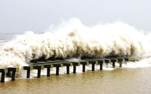 在蕭山美女壩和九號(hào)壩處,海塘轉(zhuǎn)彎,潮水沖擊丁字壩和江堤,同樣能形成“回頭潮”;錢塘江由西折向南面,到九溪珊瑚沙一帶,同樣有一條長(zhǎng)長(zhǎng)的江堤伸入江中,雖然潮水到達(dá)這里開始減弱,但當(dāng)潮水方向與風(fēng)向一致時(shí),推波助瀾,潮浪也會(huì)很大。