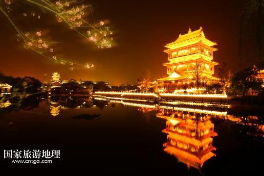國(guó)家旅游地理 山東棗莊4月22日訊 這是夜色下的臺(tái)兒莊古城復(fù)興樓(4月8日攝)。1938年春的臺(tái)兒莊大戰(zhàn),是抗日戰(zhàn)爭(zhēng)爆發(fā)后中國(guó)軍隊(duì)在正面戰(zhàn)場(chǎng)取得的一次重大勝利。臺(tái)兒莊是世界著名的二戰(zhàn)紀(jì)念城市,有著2000多年歷史的臺(tái)兒莊古城完好地保存著53處戰(zhàn)爭(zhēng)遺跡。