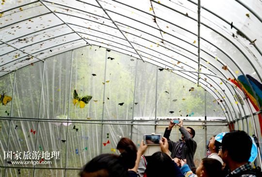 4月27日,游客在“蝴蝶谷”拍攝蝴蝶。