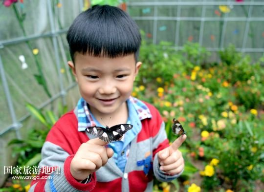 國家旅游地理 浙江杭州4月27日訊 4月27日,一名小朋友在“蝴蝶谷”觀賞落在手上的蝴蝶。當(dāng)日,位于浙江杭州江洋畈生態(tài)公園的“蝴蝶谷”對外開放,50多個(gè)品種的600多只蝴蝶在“蝴蝶谷”翩翩起舞,吸引了眾多游客前來觀賞。 /新華社發(fā)(施健學(xué) 攝)