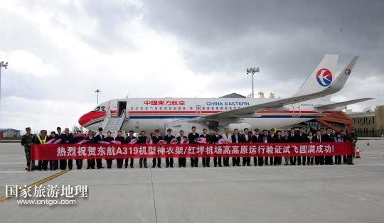 國家旅游地理 湖北神農(nóng)架4月28日訊 4月28日,試飛成功后機組人員在飛機前合影留念。當(dāng)日,東航A319機型在神農(nóng)架紅坪機場通過高高原運行驗證,試飛成功。神農(nóng)架機場海拔高度2580米,是華中地區(qū)海拔最高的機場,將于5月8日正式通航,首飛東方航空公司的上海—武漢—神農(nóng)架航線。從武漢到神農(nóng)架的旅途時間將由過去乘汽車9小時縮短至50分鐘。 /新華社記者 郝同前攝
