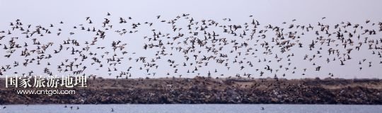 國家旅游地理 遼寧丹東5月2日訊 這是鳥群在空中飛翔(5月1日攝)。日前,遼寧省丹東市鴨綠江口濕地自然保護(hù)區(qū)迎來大批候鳥停留覓食。經(jīng)過中外鳥類專家在鴨綠江口濕地大約40公里范圍內(nèi)7個分點(diǎn)的同步調(diào)查發(fā)現(xiàn),共36種近14萬只鳥類云集于此,這些候鳥在鴨綠江口濕地經(jīng)過約1個月的休整、補(bǔ)充體能后,將繼續(xù)北上到俄羅斯西伯利亞和美國的阿拉斯加等地繁育后代。