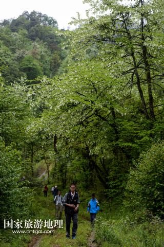 國家旅游地理 四川雅安5月4日訊 5月3日,游客從龍蒼溝國家森林公園珙桐林的鴿子花旁經(jīng)過。目前,在位于四川省大相嶺山脈東麓北坡的龍蒼溝國家森林公園里,近8萬畝的鴿子花盛開。鴿子花是珙桐之花。珙桐是我國特有的珍稀植物,瀕臨滅絕,是國家一級(jí)保護(hù)植物,也是著名的觀賞植物。珙桐花朵盛開時(shí)猶如鴿群展翅欲飛,而被稱為鴿子花。 /新華社記者 江宏景 攝