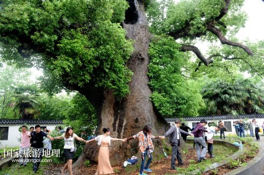 國家旅游地理 江西上饒5月18日訊 5月17日,游客在江西省德興市??阪?zhèn)??诖迩旯耪僚酝嫠?。江西省德興市??阪?zhèn)??诖逵幸豢?800多歲“高齡”的巨型古樟樹,歷史上曾遭受過多次雷擊、火災(zāi)等,其中最近的一次發(fā)生在2010年10月1日,由于村內(nèi)孩童進入可容納幾十人的樹洞內(nèi)玩耍,不慎引發(fā)火災(zāi),致使大火從樹洞里燒起,讓這棵千年古樟幾近滅頂。此后,當?shù)卮迕褡园l(fā)捐款近6萬元,請來有關(guān)專家救治。經(jīng)過近4年的精心護救,如今這棵千年古樟再度逢春,枝繁葉茂,吸引了各方游客前來觀賞。 /新華社發(fā)(卓忠偉 攝)