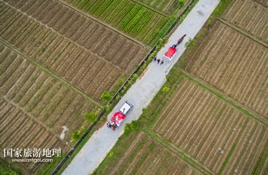 國(guó)家旅游地理 浙江嘉興5月10日訊 5月9日,新郎乘坐馬車(chē)和迎親隊(duì)伍行進(jìn)在西牛橋村的村道上。當(dāng)日,浙江省桐鄉(xiāng)市西牛橋村一對(duì)新人放棄常見(jiàn)的汽車(chē)車(chē)隊(duì),而是采用乘坐馬車(chē)、親友步行的方式,給周邊村民上演了一場(chǎng)低碳、綠色的“馬車(chē)婚禮”。