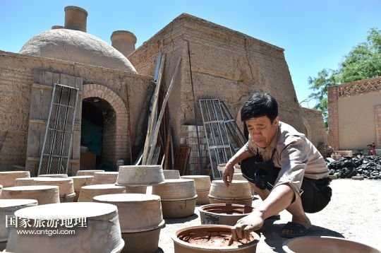 國家旅游地理 寧夏銀川6月12日訊 6月11日,李五奎在銀川西夏風情園陶藝館制作陶罐。今年51歲的陶藝師李五奎和泥巴打了一輩子交道。從他爺爺開始,一家三代人都以制陶為生。李五奎從十幾歲開始便幫著家里制作陶器。