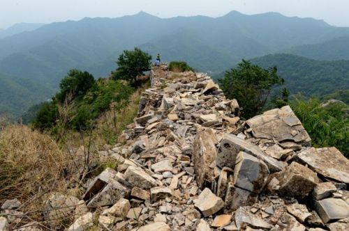 2015年7月9日,河北省懷來縣境內(nèi)一古長城烽火臺頂部已成為碎石堆。新華社記者牟宇 攝
